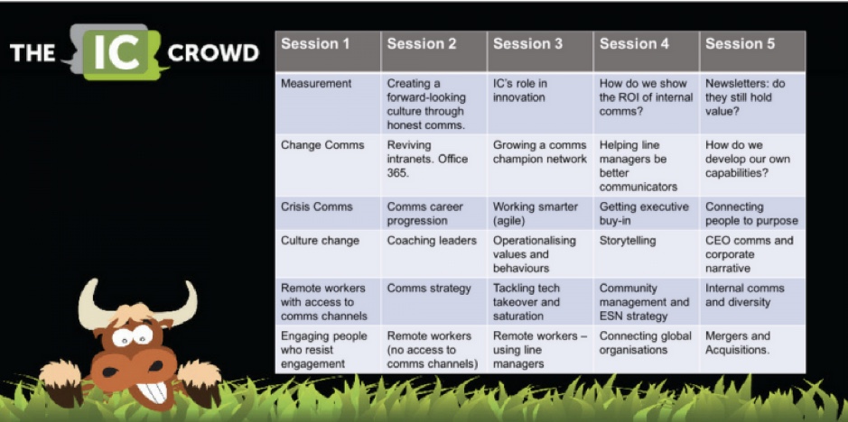 This, then, makes interesting reading – credit to Rachel Miller at allthingsIC, and The Big Yak, an IC unconference – great name, great concept – held on June 9 in London, www.thebigyak.co.uk. It’s the list of agenda topics.
